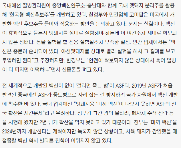 전세계적으로 ASF백신이 없다고 하니 경쟁이 치열하겠습니다