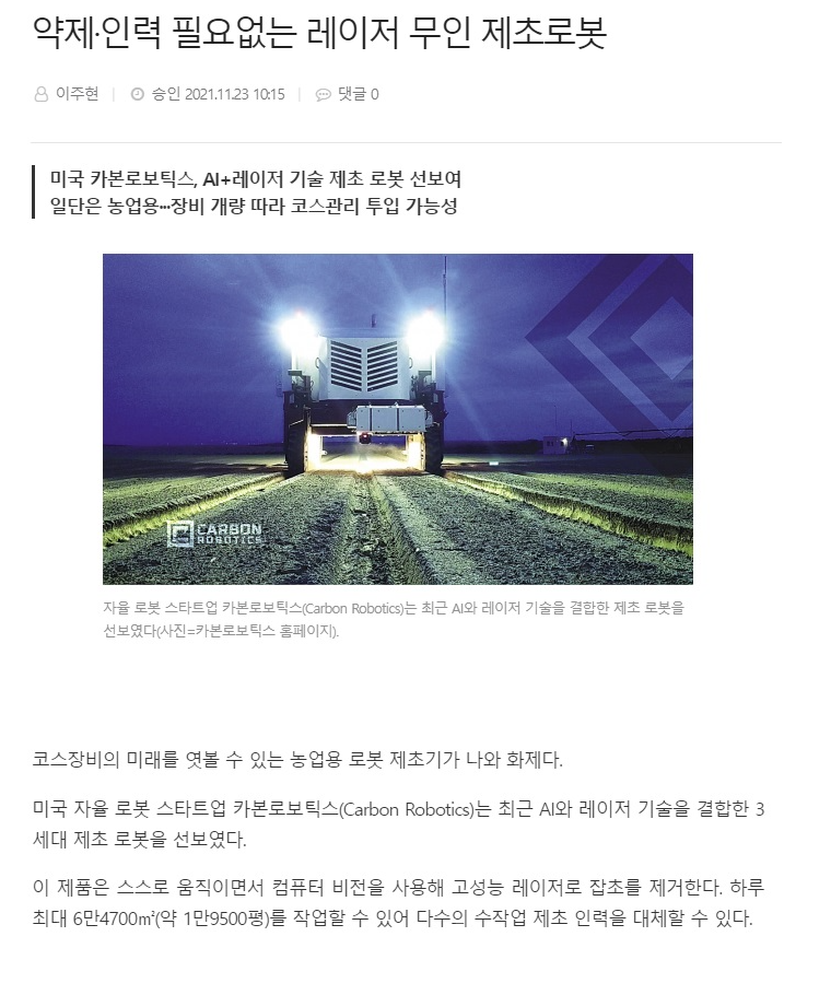 농약 안 쓰고 ai 로봇이 스스로 돌아다니면서 잡초 다 죽임