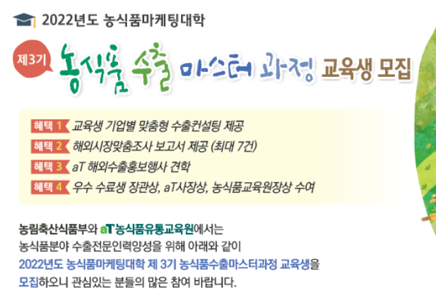 제3기 농식품 수출 마스터 과정 교육생 모집 "AT농식품유통교육원"